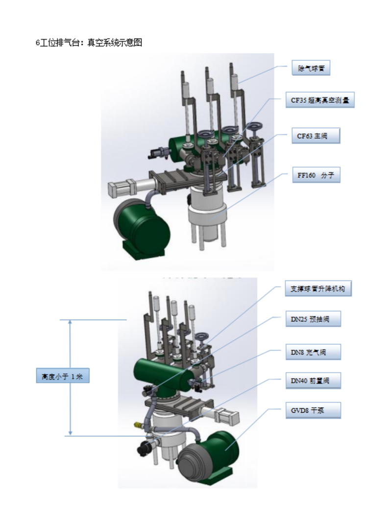 b .單個真空腔尺寸: φ160×400(L)mm,排氣口間距 130mm。帶 1 個 CF150 的閘闆主閥, 1 個預抽閥和 1 個放氣閥。